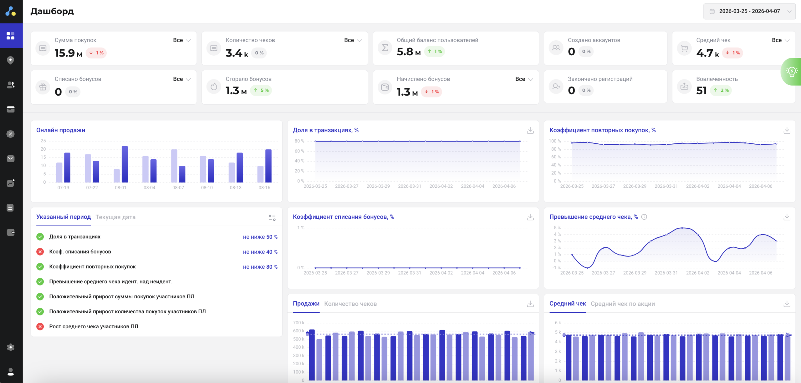 Рост среднего чека и повторных покупок участника программы лояльности