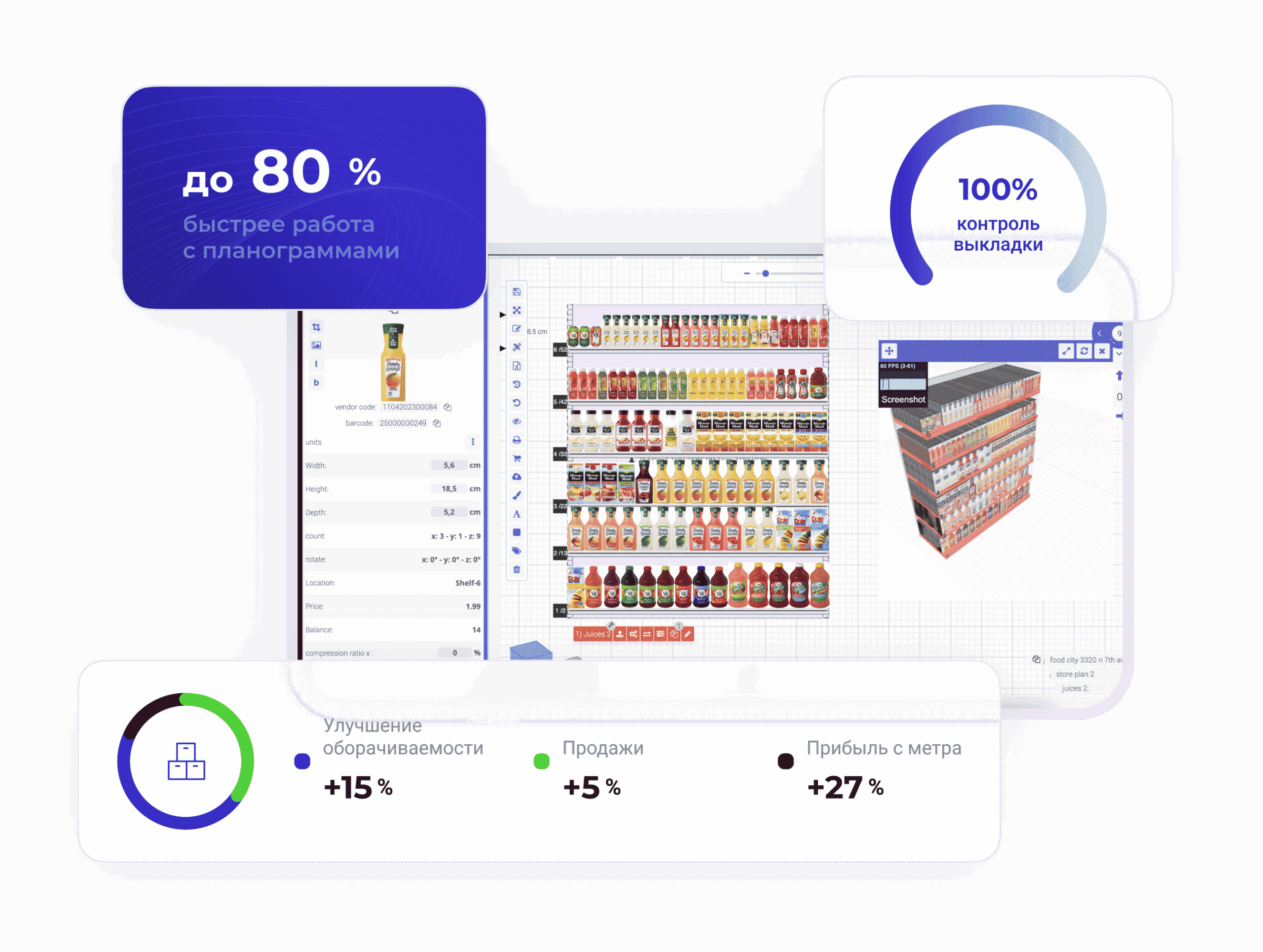 Наша программа для мерчендайзинга позволяет увеличить выручку с метра полки, прибыль магазина и лояльность покупателей.