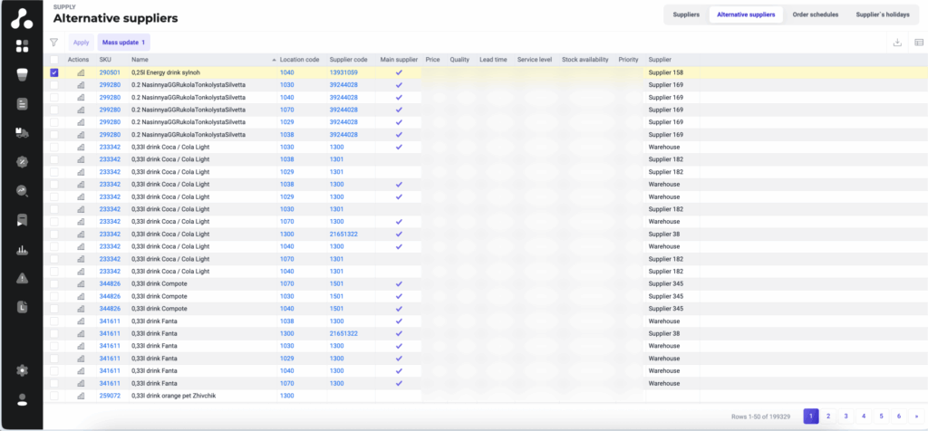 A new tool for managing alternative suppliers has been introduced in the system (Supply → Alternative suppliers).