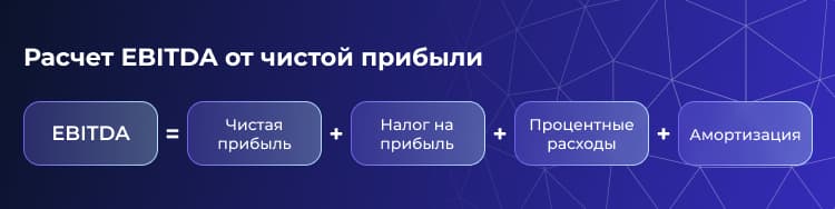 EBITDA = Чистая прибыль + Налог на прибыль + Проценты по кредитам + Амортизация